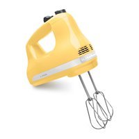 The KitchenAid KHM512MY Ultra Power 5-Speed Hand Mixer, in majestic yellow, features stainless-steel turbo beaters with no center posts to thoroughly mix ingredients ...